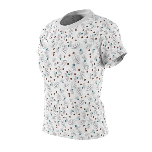 Women's Cut & Sew Tee (AOP) Kukloso Whimsical No 86 Silver Spiral on White - Free Shipping