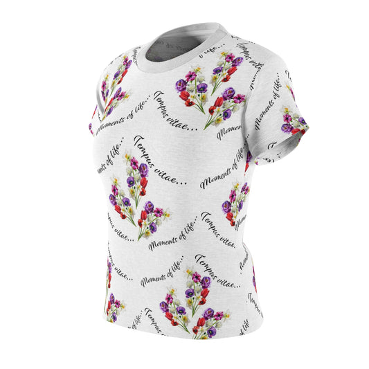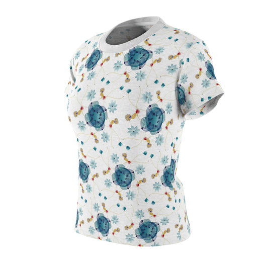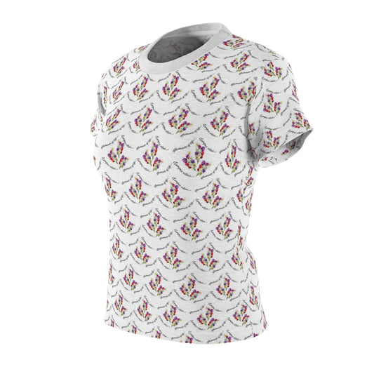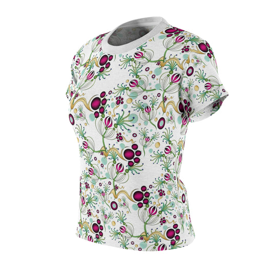 Women's Cut & Sew Tee (AOP) Kukloso 'Moments of Life' Florals on White Small Pattern - Free Shipping