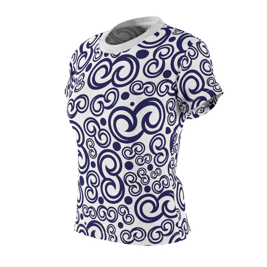 Women's Cut & Sew Tee (AOP) Kukloso Fleurons No 77 No 1 Navy on White - Free Shipping