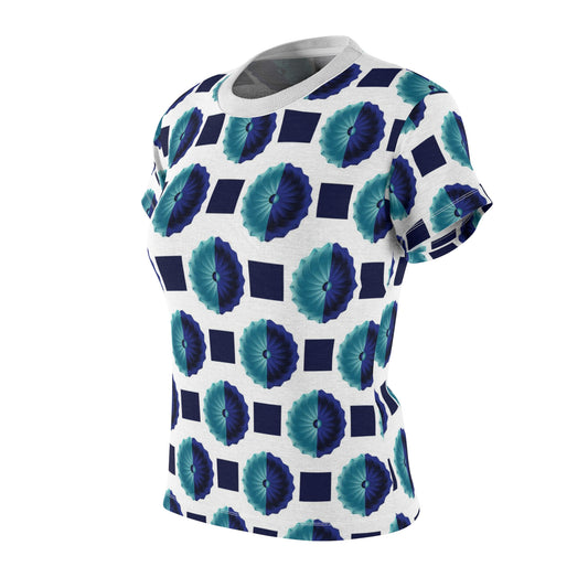 Women's Cut & Sew Tee (AOP) KuklosoAG No 22 Aqua, Navy Shapes on White - Free Shipping