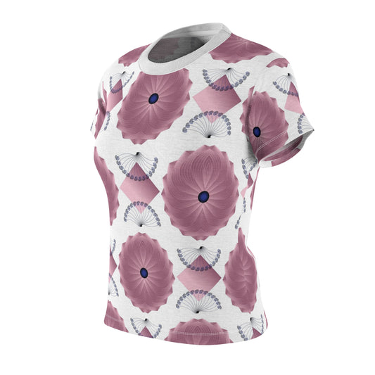 Women's Cut & Sew Tee (AOP) Kukloso Abstractical Shell Design Pink on Lavender - Free Shipping