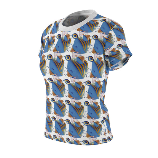 Women's Cut & Sew Tee (AOP) Kukloso Whimsical No 57 No 2 Pink & Navy Shapes on Aqua lines - Free Shipping