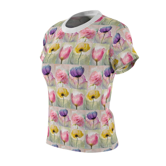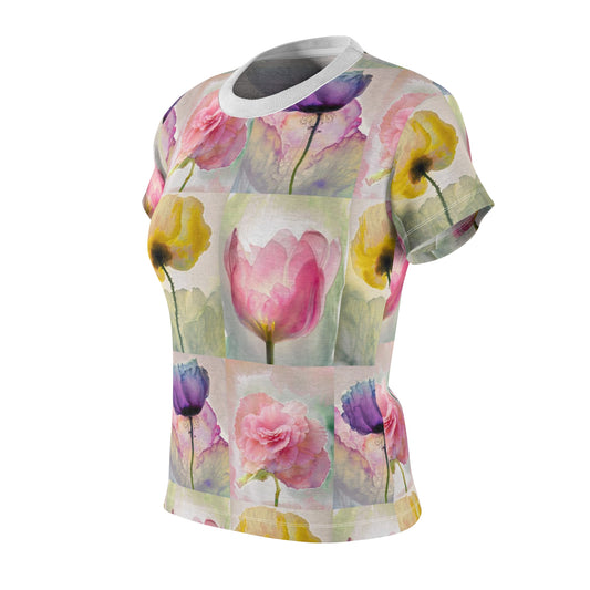 Women's Cut & Sew Tee (AOP) Watercolor Florals on White - Free Shipping