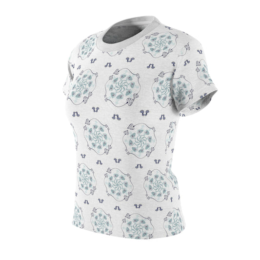 Women's Cut & Sew Tee (AOP) Kukloso Fleurons No 32 No 9 Periwinkle on White - Free Shipping