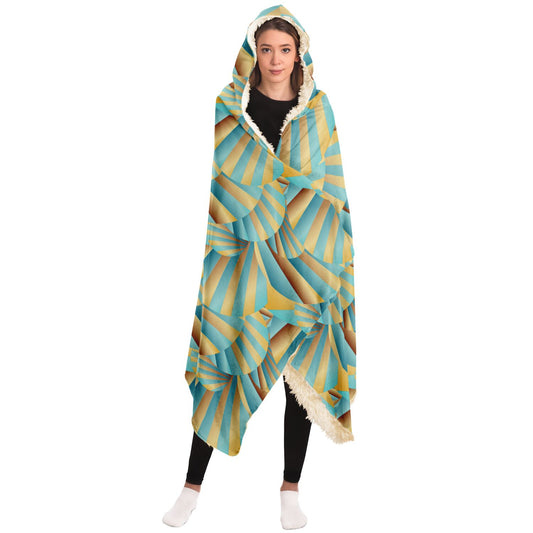 Hooded Blanket - AOP Kukloso Abstractical No 269 Aqua, Gold Shapes - Free Shipping