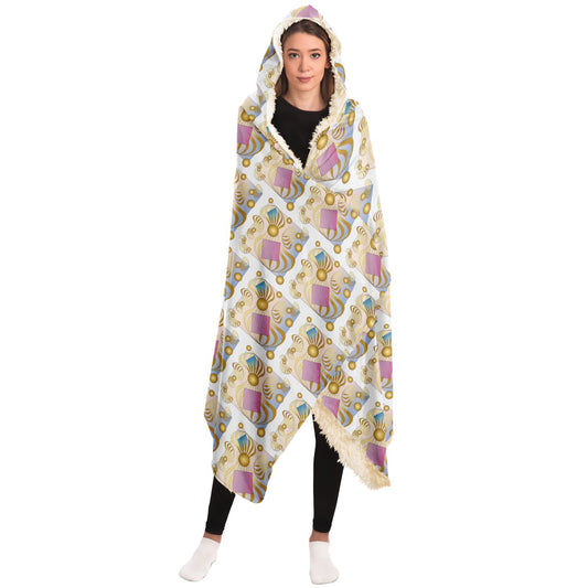 Hooded Blanket - AOP Kukloso Abstractical No 214 Blue, Pink, Gold Shapes on White - Free Shipping