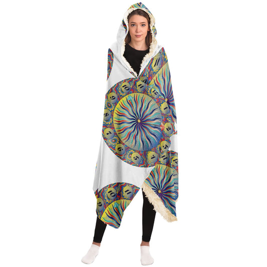 Hooded Blanket - AOP Kukloso Abstractical No 236 Abstract Clock Multicolored on White - Free Shipping
