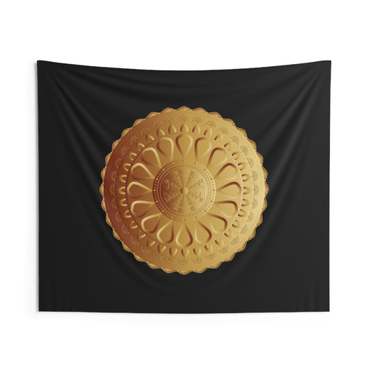 Indoor Wall Tapestries Kukloso Mandala Decorata No 119 Gold on Black Free Shipping