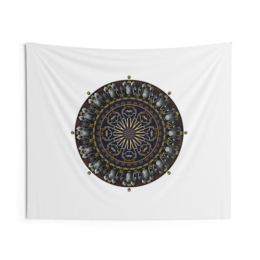 Indoor Wall Tapestries Kukloso Mandala No 151 An Intricate Luxury Gold & Navy Design on White - Free Shipping