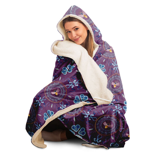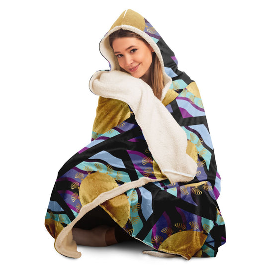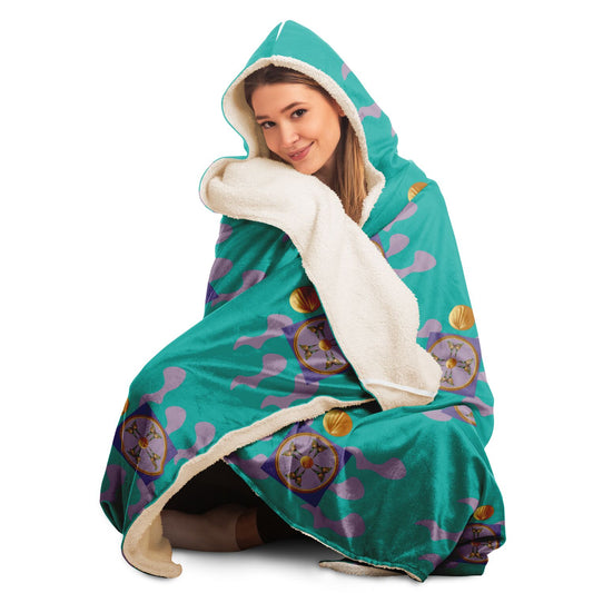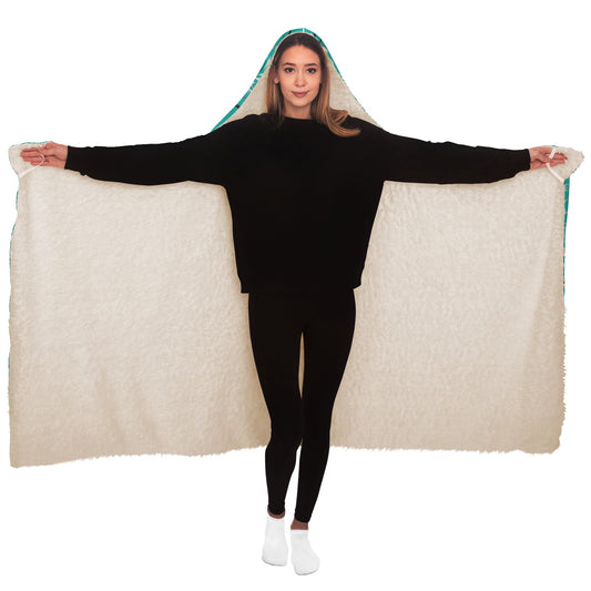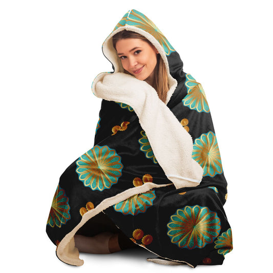 Hooded Blanket - AOP Mandala No 19 Golden Moth Pattern on Turquoise