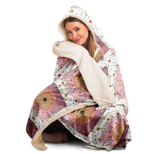 Hooded Blanket - AOP Mandala No 148 No 10 Pink, Gold Abstract Florals on White