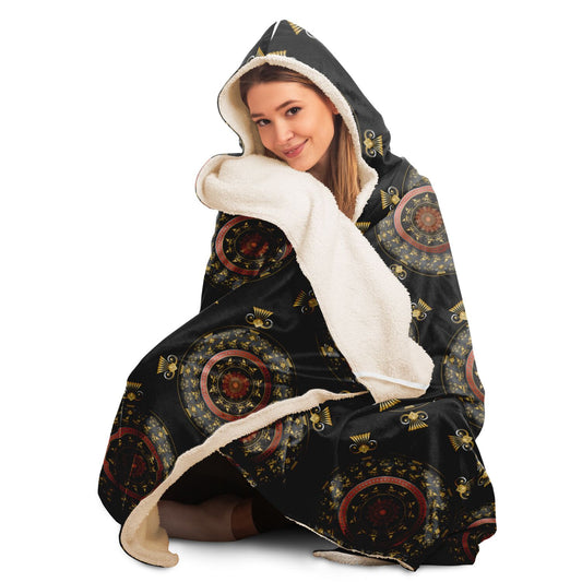 Hooded Blanket - AOP Mandala No 27 Intricate, Gold, Silver, Copper on Black
