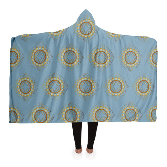Hooded Blanket - AOP Mandala No 24 Gold on Warm Pale Blue