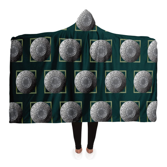 Hooded Blanket - AOP Mandala No 22 Silver on Dark Green