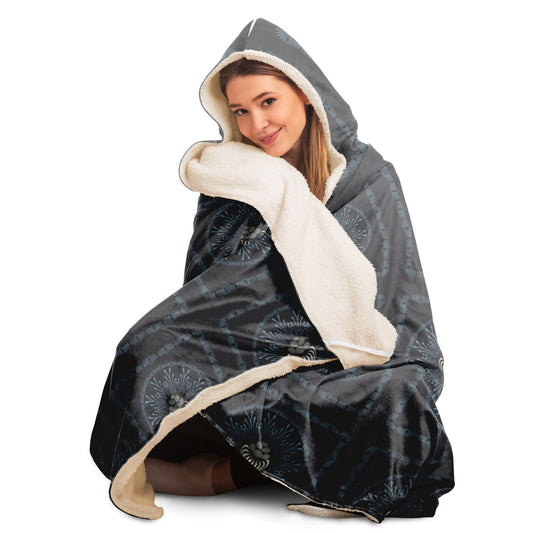 Hooded Blanket - AOP Mandala No 25 No 11 Pale Blue on Gray