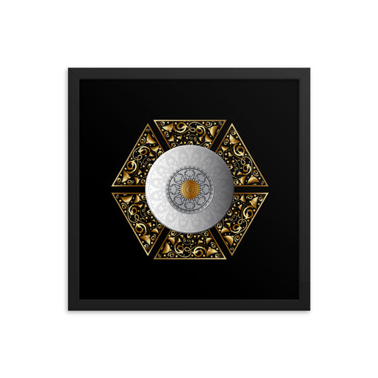 Framed Poster Circumplexical No 3855 Six-Sided Mandala Silver - Gold Free Shipping