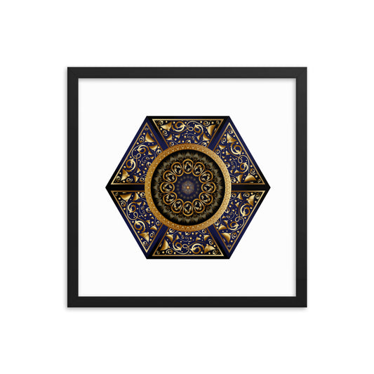 Framed Poster Circumplexical No 3865 Six-Sided Mandala Black - Gold Free Shipping