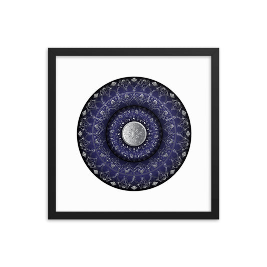 Framed Poster Circumplexical No 3949 Mandala Navy - Silver Free Shipping