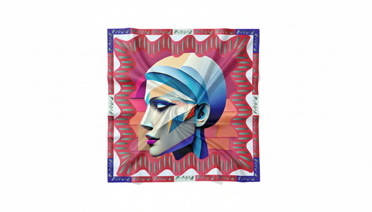 100% Silk Charmeuse Square Scarf Modern Cubist Lady
