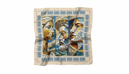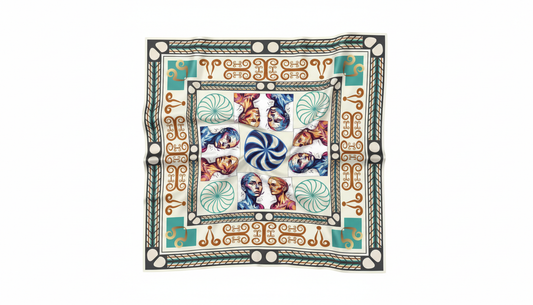 100% Silk Charmeuse Square Scarf Roman Mosaic Triptych No 1