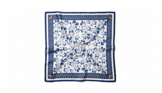 100% Silk Charmeuse Square Scarf Blue Abstract Florals No 3