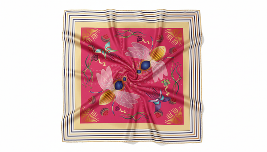 100% Silk Charmeuse Square Scarf The Golden Bees No1