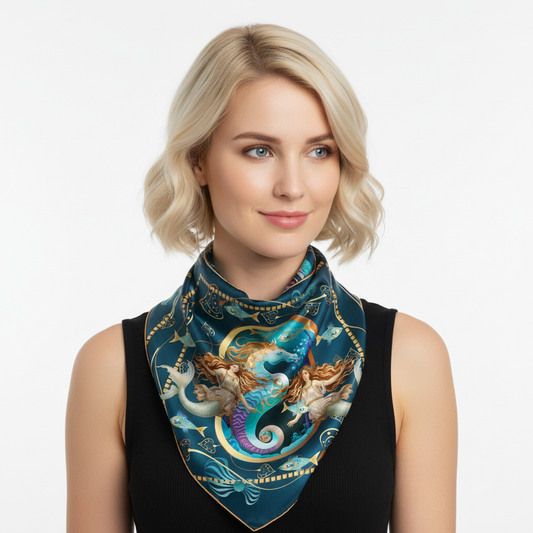 100% Silk Charmeuse Square Scarf Portrait of a Mermaid