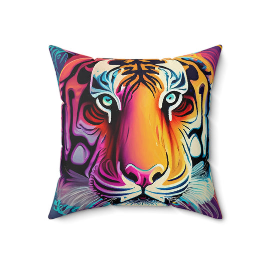 Spun Polyester Square Pillow Kukloso Cubist Faces No 7 Lion & Tiger - Free Shipping