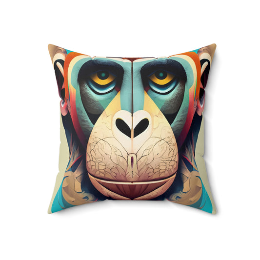 Spun Polyester Square Pillow Kukloso Cubist Faces No 6 Owl & Chimp - Free Shipping