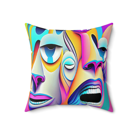 Spun Polyester Square Pillow Kukloso Cubist Faces No 8 - Free Shipping