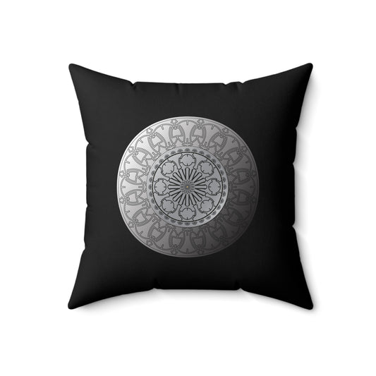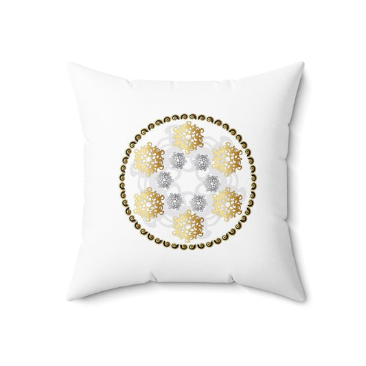 Spun Polyester Square Pillow Kukloso Mandala No 107 Gold/Silver - Free Shipping