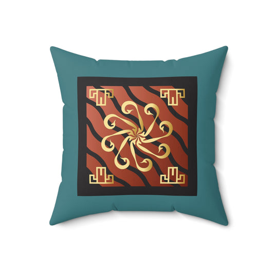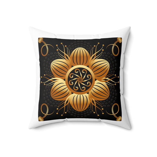 Spun Polyester Square Pillow Kukloso Mandala No 108 Gold/Navy & Gold/Copper - Free Shipping