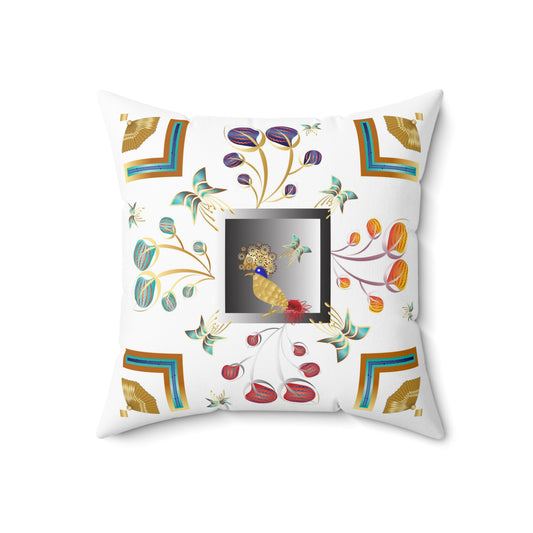 Spun Polyester Square Pillow Kukloso Melange de fleur No 21 Gold & Silver - Free Shipping