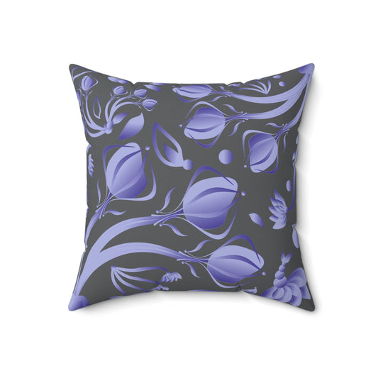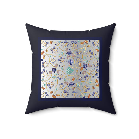 Spun Polyester Square Pillow Kukloso Melange de fleur No 9 Navy & Gray- Free Shipping