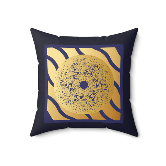 Spun Polyester Square Pillow Kukloso Mandala No 49 gold/Navy - Free Shipping
