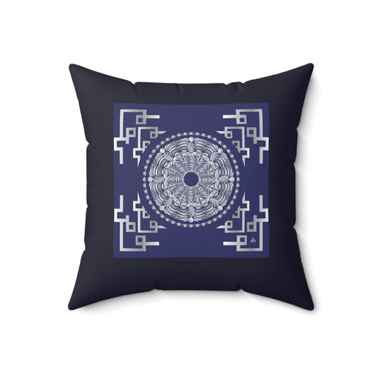 Spun Polyester Square Pillow Kukloso Mandala No 42 Navy, No 43 Gold - Free Shipping