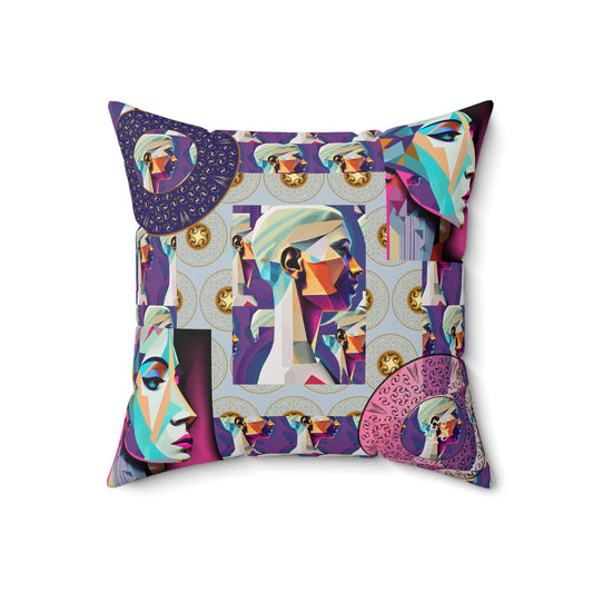 Spun Polyester Square Pillow Kukloso Space Faces No 70 - Free Shipping