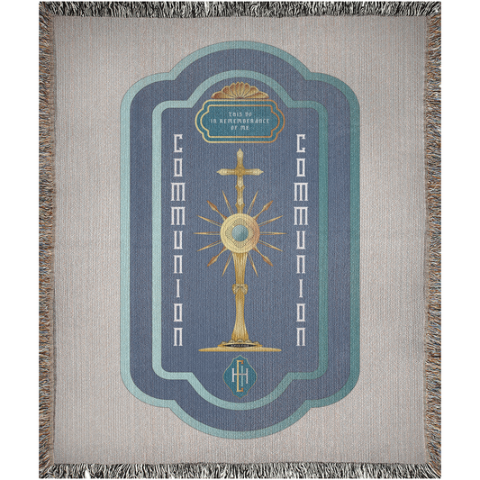 Woven Blankets Kukloso IHC Christogram Communion Card, Golden Monstrance - Free Shipping