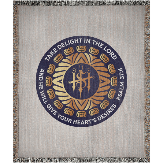 Woven Blankets Kukloso ISH Christogram "Take Delight In The Lord" Psalm 37:4 - Free Shipping