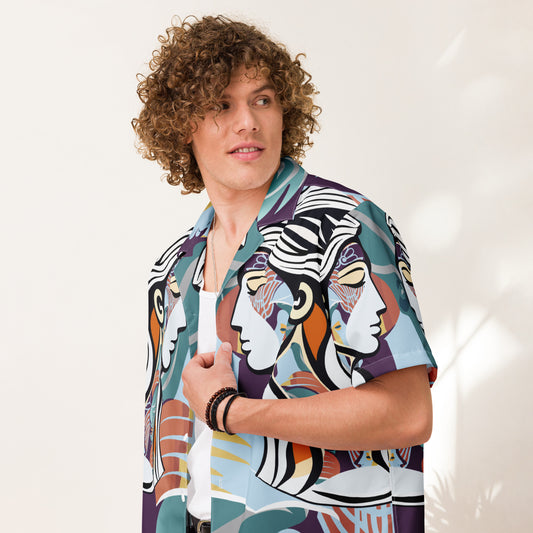Unisex button shirt Kukloso Cubist Couple No 1 A - Free Shipping