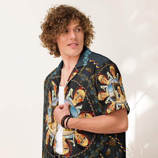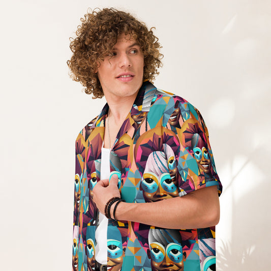 Unisex button shirt Kukloso Cubist Faces No 8 - Free Shipping