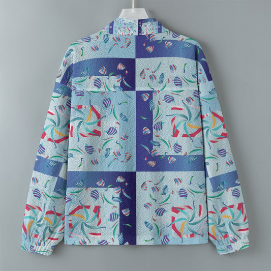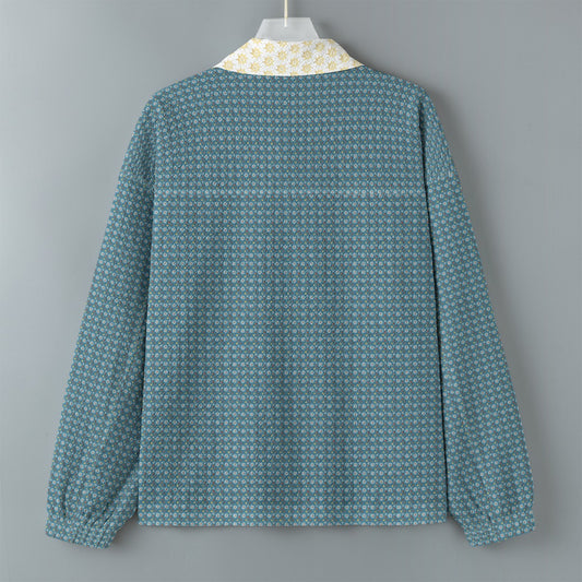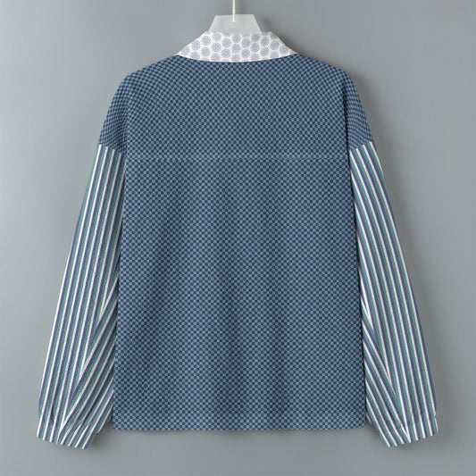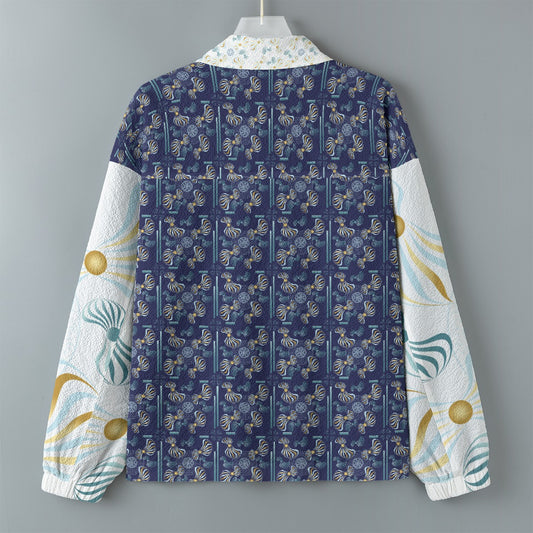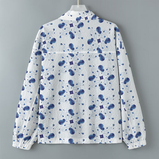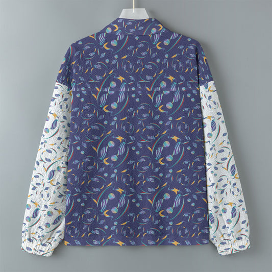 AOP Unisex Casual Lapel Jacket Kukloso Whimsical Navy/White