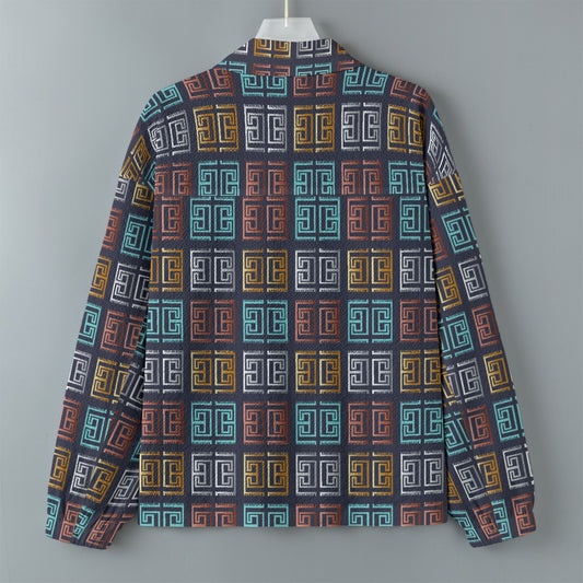 AOP Unisex Casual Lapel Jacket Kukloso Greek Border No 42