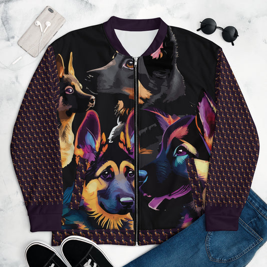 Unisex Bomber Jacket Kukloso German Sheperd Dogs in Liquid Colors - Free Shipping