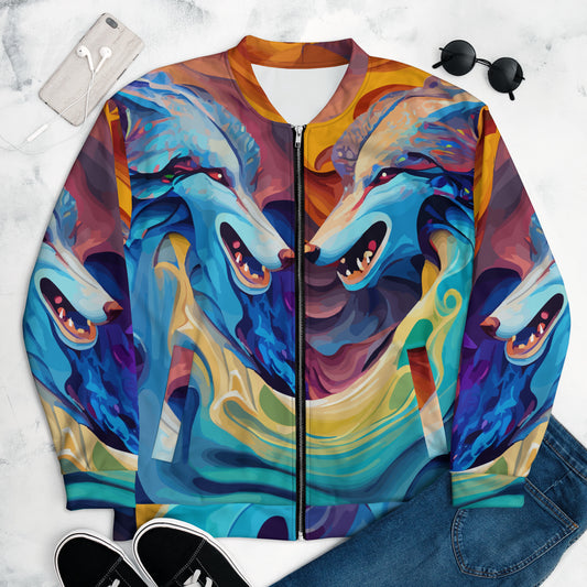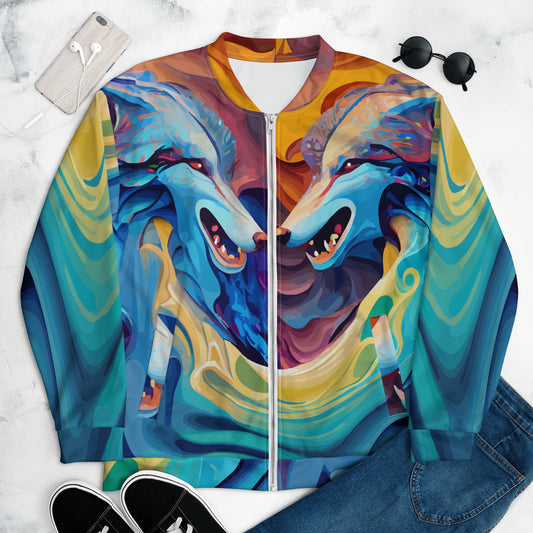 Unisex Bomber Jacket Kukloso Wolves in Liquid Color No 5 - Free Shipping