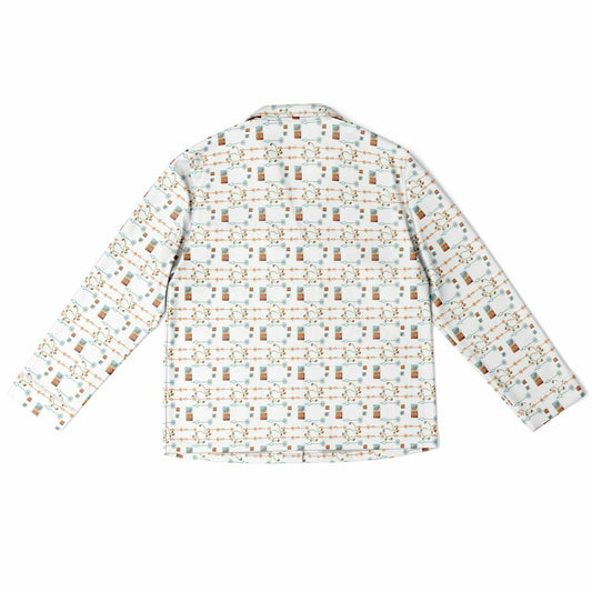 Women's Satin Pajamas - AOP Kukloso Fleurons No 80 No 1 Abstract shapes Pink, Aqua, Copper, Navy, Silver & Gold on White - Free Shipping