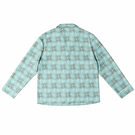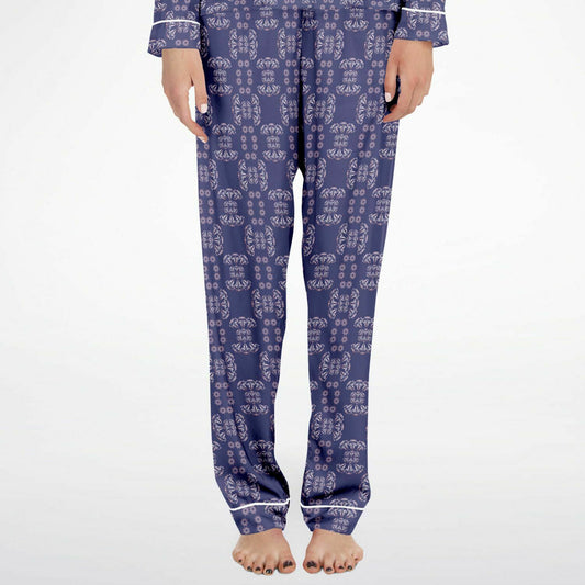 Women's Satin Pajamas AOP Kukloso Mandala No 121 Pink abstract Mandala shapes on Blue - Free Shipping
