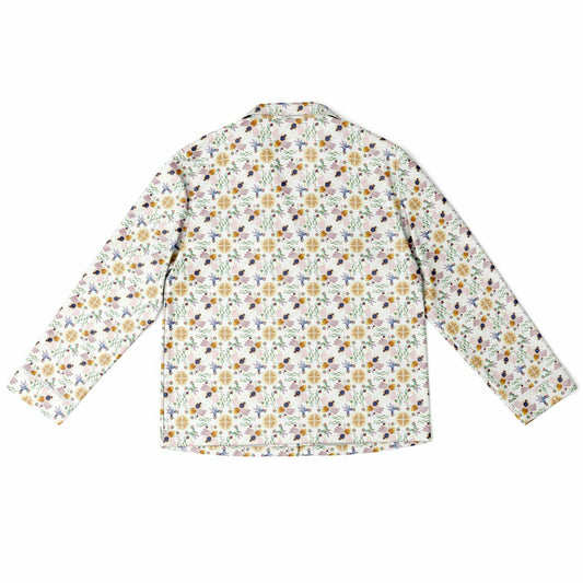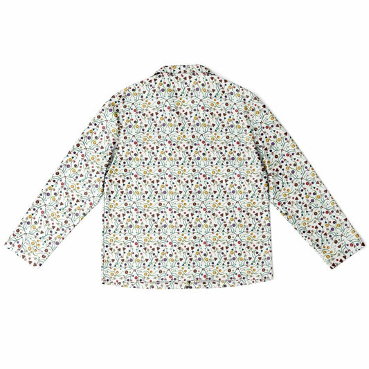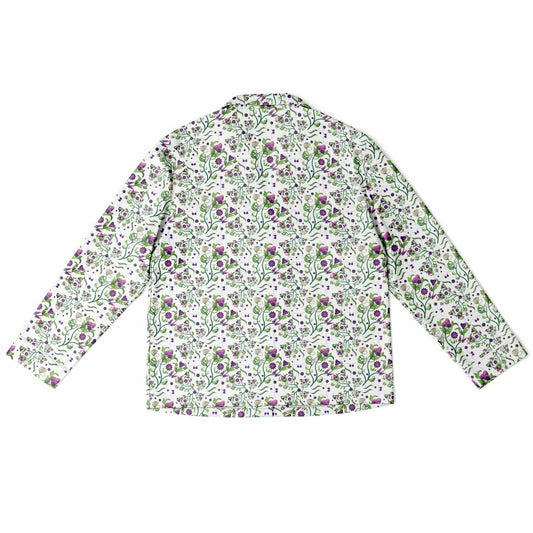 Women's Satin Pajamas AOP Kukloso Melange de fleur No 7 Multicolored Green & Violet flowers on White - Free Shipping