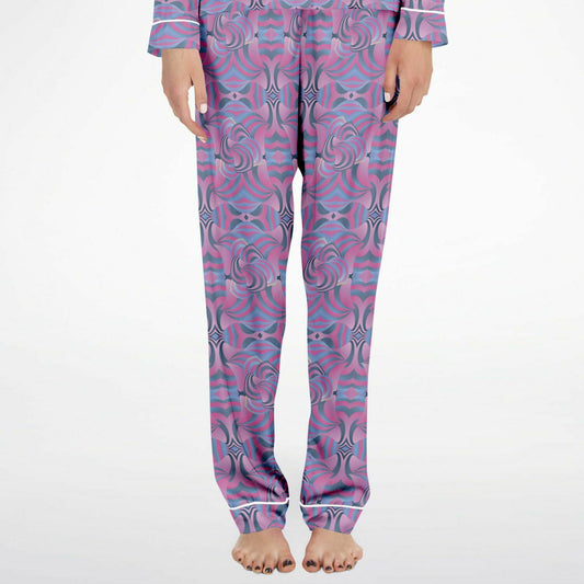 Women's Satin Pajamas - AOP Kukloso Ice Cream Swirls No 40 Abstract Sikver & Pink colors - Free Shipping