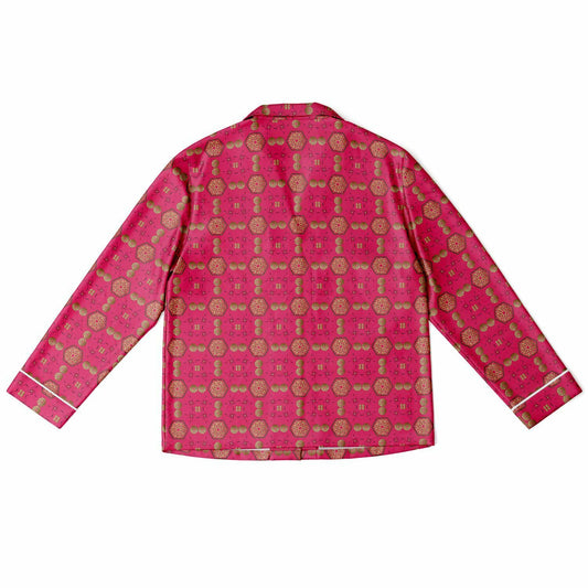 Women's Satin Pajamas - AOP Kukloso Mandala No 122 Mini-Mandalas, Gold & Black accent colors on a Magenta-Purple background - Free Shipping